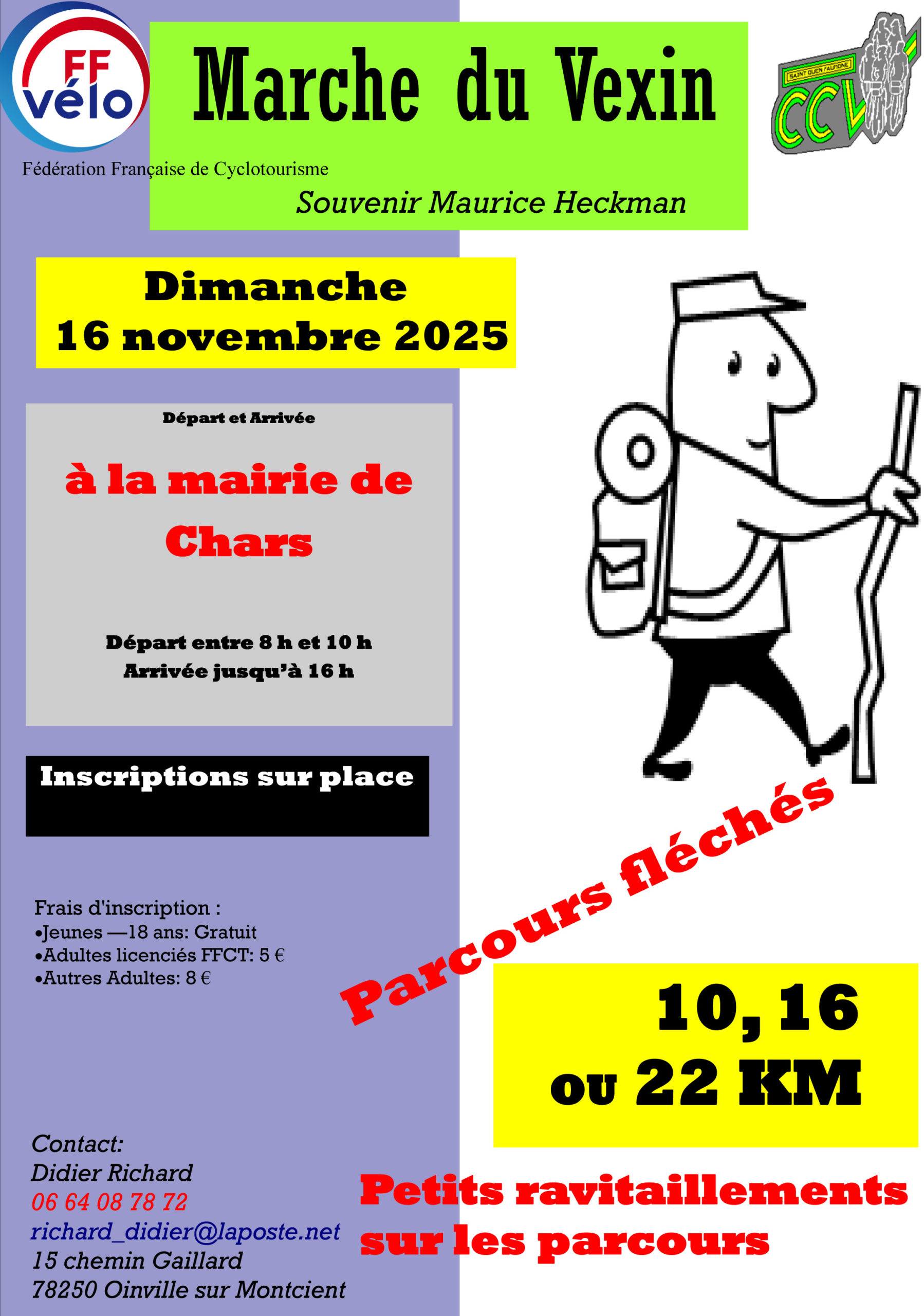 Le CCV convie les clubs de la région qui souhaite laisser le vélo de côté pour une journée à sa traditionnelle manifestation automnale, la « marche du Vexin ».