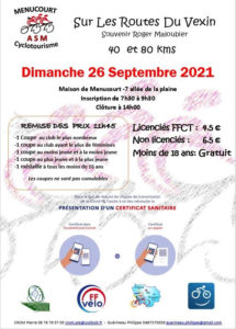 Le club de Menucourt organise sa randonnée annuelle. Le départ en vélo se fera de Monoprix à 7 h 30, ou rendez-vous sur place à 8 h 30. Les frais d'inscription pour les membres de l'UVA seront pris en charge par le club.