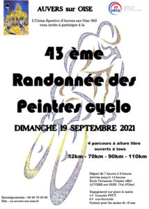 L'US Auvers sera heureuse de nous accueillir pour sa 43e Randonnée des Peintres le dimanche 19 septembre 2021. 4 parcours vous seront proposés 52, 70, 90 et 110 kilomètres. Ils nous amèneront sur les routes du Parc Naturel du Vexin. Les membres du club d'Auvers se mobiliseront pour nous faire passer une excellente matinée cyclotouristique dans le respect des gestes sanitaires qui leur seront imposés. Pour plus d'informations, consultez leur site Internet qui sera actualisé régulièrement et sur lequel seront…
