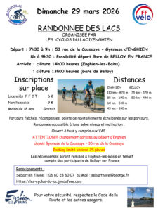 Le club cyclo d'Enghien-les-Bains organise sa randonnée route annuelle. Quatre parcours au programme : P1 : distance 45 km, dénivelé + 380m https://www.openrunner.com/route-details/23398209 P2 : distance 60 km, dénivelé + 530m https://www.openrunner.com/route-details/23398210 P3 : distance 85 km, dénivelé + 660m https://www.openrunner.com/route-details/23398212 P4 : distance 110 km, dénivelé + 810m https://www.openrunner.com/route-details/23398213 Les frais d'inscription pour les adhérents de l'UVA seront pris en charge par le club. Départ groupé en vélo à 7h30 devant Monoprix ou rendez-vous sur place à 8h00. Attention, cette année, changement de…