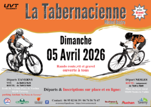 L'UVT donne rendez-vous à tous les cyclos de la région pour sa 27e édition de la Tabernacienne. Au programme : Route P1 dist.40km | deniv.340m | Très facile P2 dist.77km | deniv.840m | Facile P3 dist.90km | deniv.870m | Difficile P4 dist.103km | deniv.980m | Très difficile VTT P1 dist.18km | deniv.200m | Très facile P2 dist.30km | deniv.370m | Facile P3 dist.40km | deniv.610m | Difficile P4 dist.50km | deniv.830m | Très difficile Gravel P1 dist.61km | deniv.600m |…