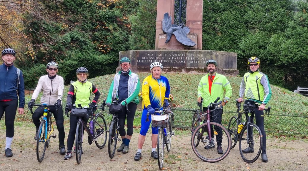 11Le 11 novembre, sept membres de l’UVA ont participé à la traditionnelle randonnée du Souvenir. Après une approche voiture jusqu’à Senlis, le groupe pris la direction de Compiègne pour gagner ensuite la clairière de l’armistice à Rethondes, aux alentours de 11h00, où plusieurs autres cyclos d’Île-de-France étaient présents pour ce rendez-vous commémoratif.