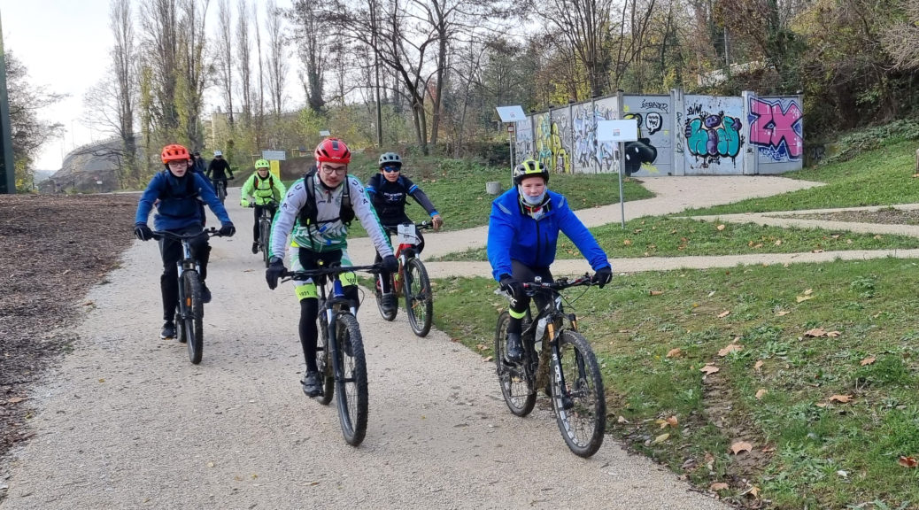 Il y a des samedis ou, si l’on s’écoutait, il serai plus sage de rester chez soi, bien au chaud… Mais à l’école vélo-VTT, ce n’est pas un froid glacial qui freine les ardeurs des participants. Pour preuve, la séance de ce 22 novembre où, malgré une température avoisinant le zéro degré, une quinzaine de jeunes était présente pour une séance débridée sur la butte d’Orgemont et le parc des Chanteraines gagné via le chemin de halage emprunté au pied du viaduc de Gennevilliers, permettant ainsi à chacun d’admirer les fresques monumentales de l’artiste Rouge Hartley récemment inaugurées.